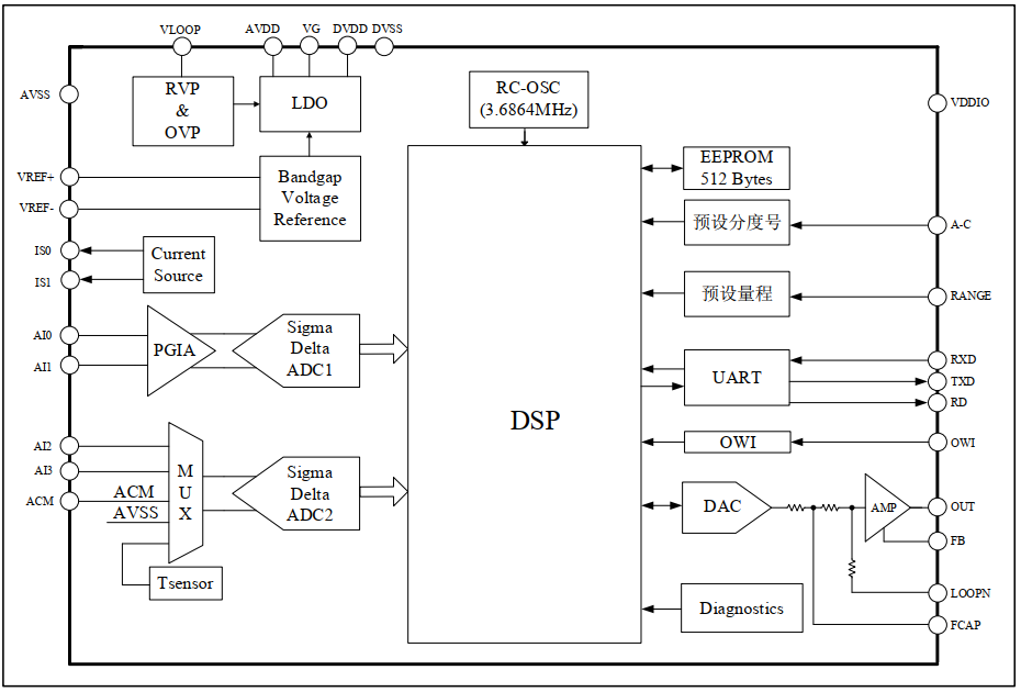内置16为DAC,支持4~20mA/0~10V/0~5V变送输出,并支持载波通信。